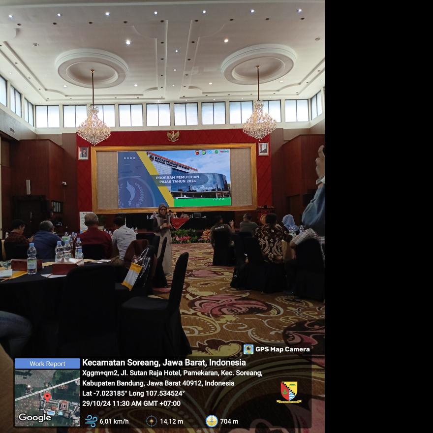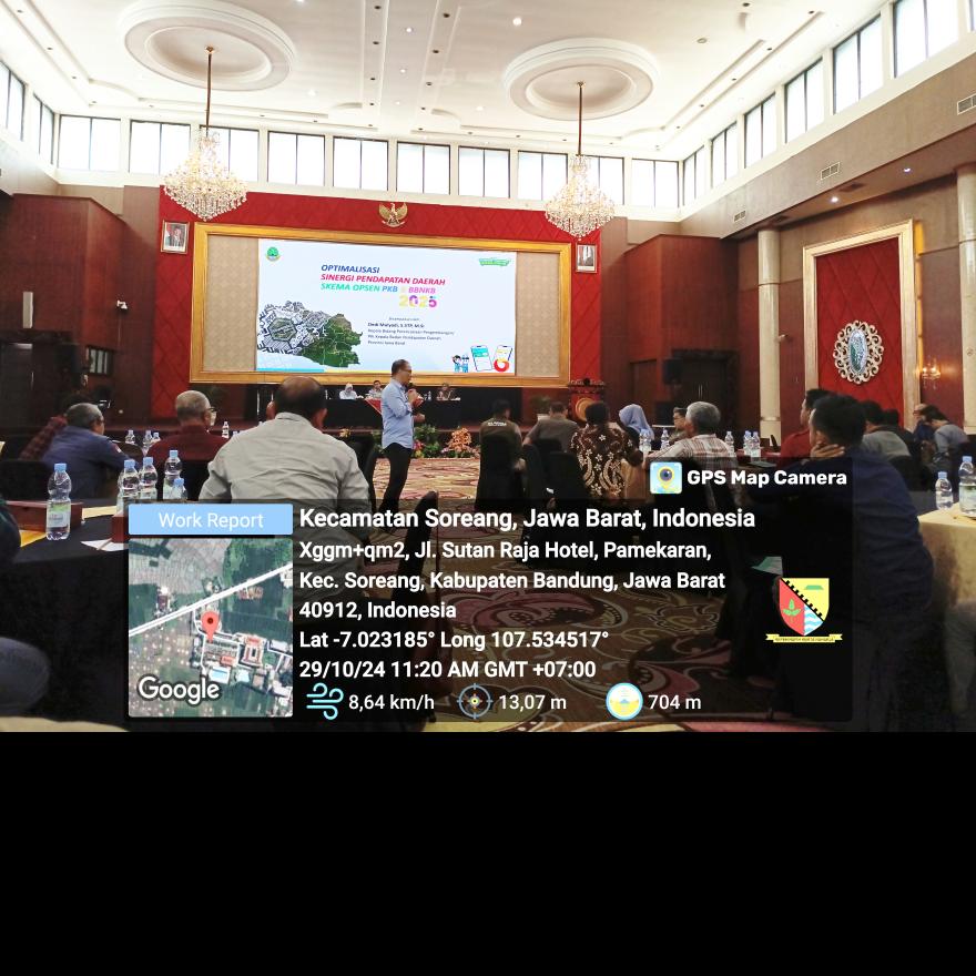 Selasa (29/10). Kegiatan Sosialisasi Pemberlakuan Opsen Pajak Kendaraan (PKB) dan Bea Balik Nama Kendaraan Bermotor (BBNKB) di Kabupaten bandung Tahun 2024. Bertempat di Sutan Raja Hotel dan Convention Centre Soreang Kabupaten Bandung.