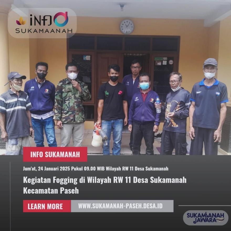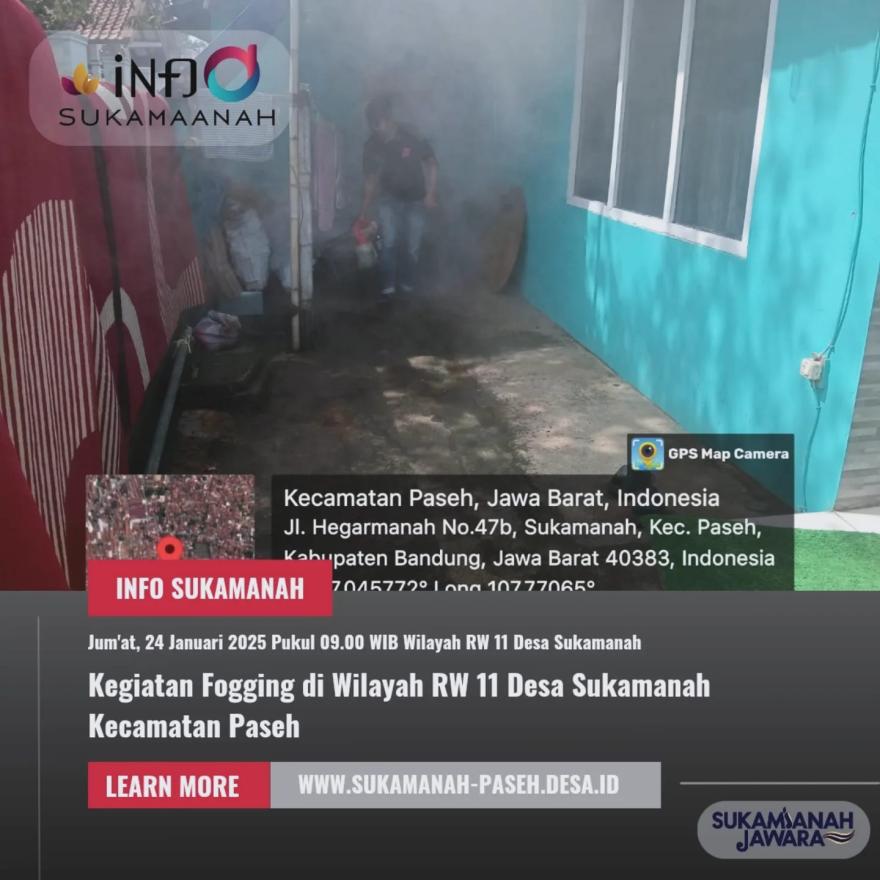 INFO-SUKAMANAH. Fogging untuk lingkungan sehat! Hari ini pengurus RW 11 bersama Kepala Dusun melaksanakan kegiatan fogging di wilayah Desa Sukamanah. Langkah ini dilakukan untuk mencegah penyebaran penyakit DBD dan menjaga kesehatan warga. Terima kasih kepada seluruh pihak yang telah berkontribusi dalam kegiatan ini. Mari bersama-sama kita jaga kebersihan dan kesehatan lingkungan.