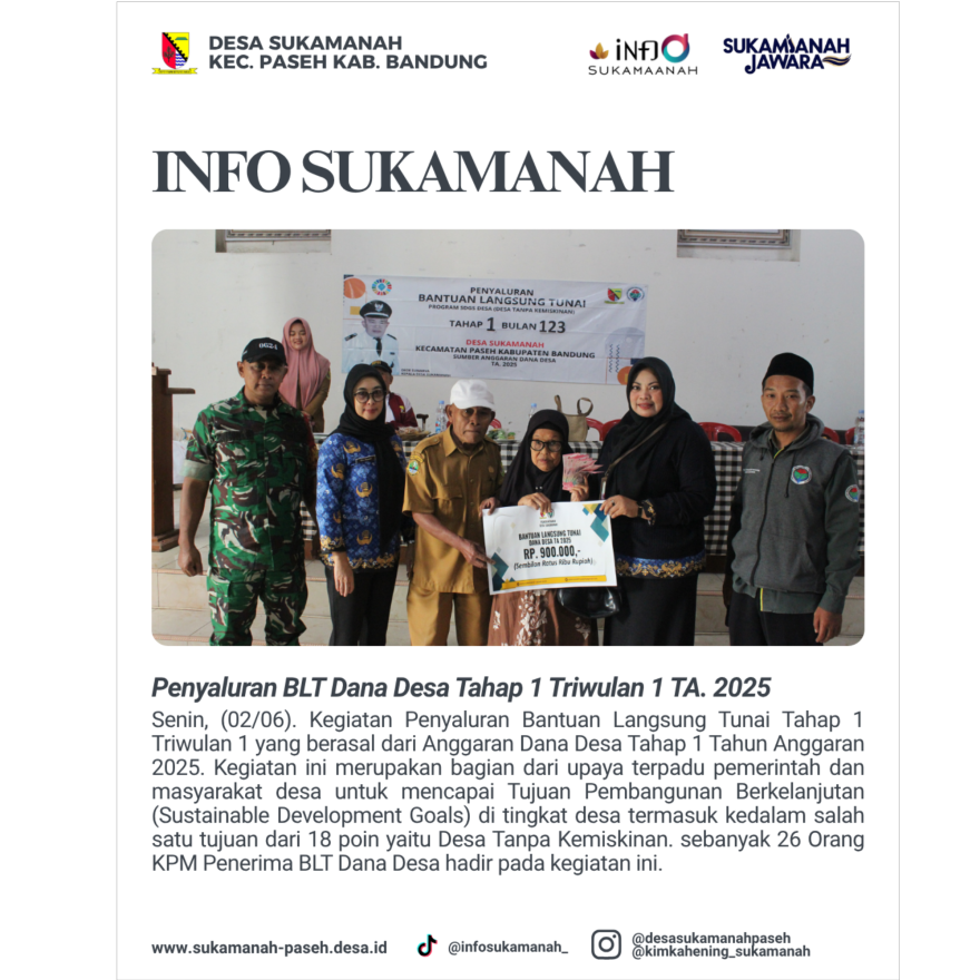 INFO-SUKAMANAH. Kamis, 09 Januari 2025. Pemerintah Desa Sukamanah, Kecamatan Paseh, melaksanakan kegiatan...